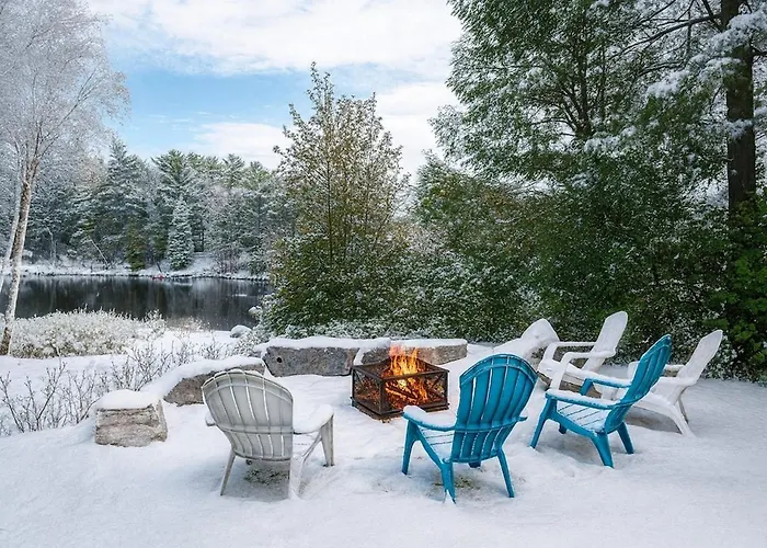 Lakefront Muskoka Cottage With Fire Pit And Bbq面朝花园,距离慕斯科卡湖博物馆6公里。